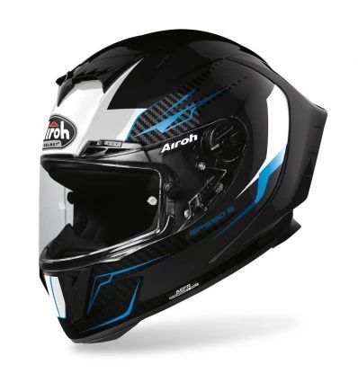 Shells in 3 different sizes, made of HPC (High Performance Composite), type-approved 2D racing visor with quick release, 8 air vents to ensure optimal ventilation, Pinlock lens included, Tear-Off Ready, Wind-Stop and A.E.F.R. (Airoh Emergency Fast Release) system for the quick removal of the cheek pads in case of emergency, complement this state-of-the-art product.