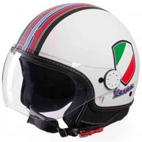 Casca Vespa realizata din material ABS, mecanism vizor fixat cu surub metalic de culoarea carcasei. Logo Vespa Shield pe partea laterala a carcasei. Tapiterie dedicata in conformitate cu noul aspect Vespa V-Stripes. Tesatura interioara inovativa 3D. Catarama micrometrica. Fabricata in Italia.