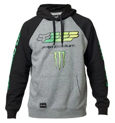 The Fox x Monster Energy Pro Circuit Zip hoodie is cut from a soft cotton fleece blend for exceptional comfort and warmth – perfect for wearing trackside while you warm up the bikes. The Fox x Monster Pro Circuit graphics are featured prominently on the front. And details like silicone coated aglets, adjustable drawcord, and front hand warmer pockets round out the hoodie.